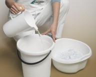 2. Do osobnego wiadra wlać odmierzoną ilość wody (według wskazania podanego na opakowaniu)